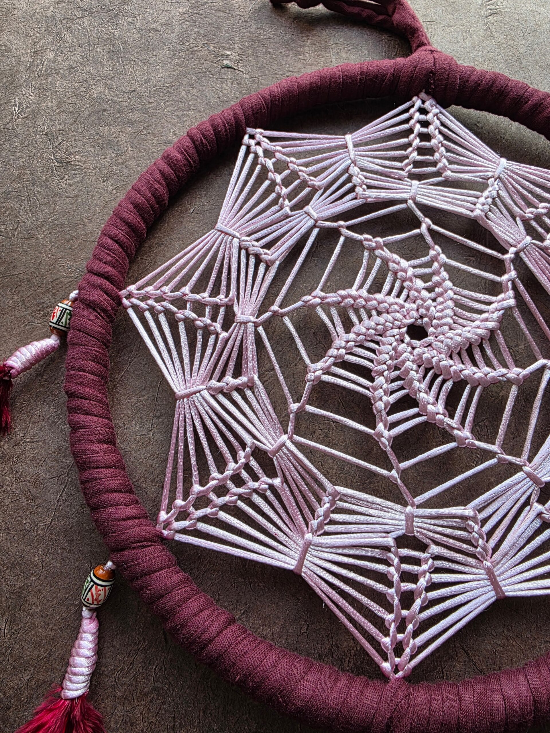Atrapasueños rosa metalizado de 27 cm de diámetro.