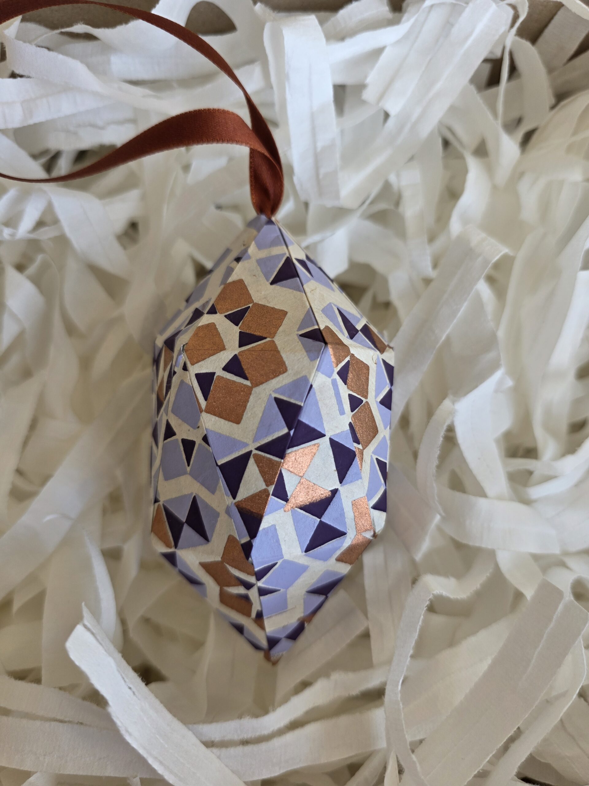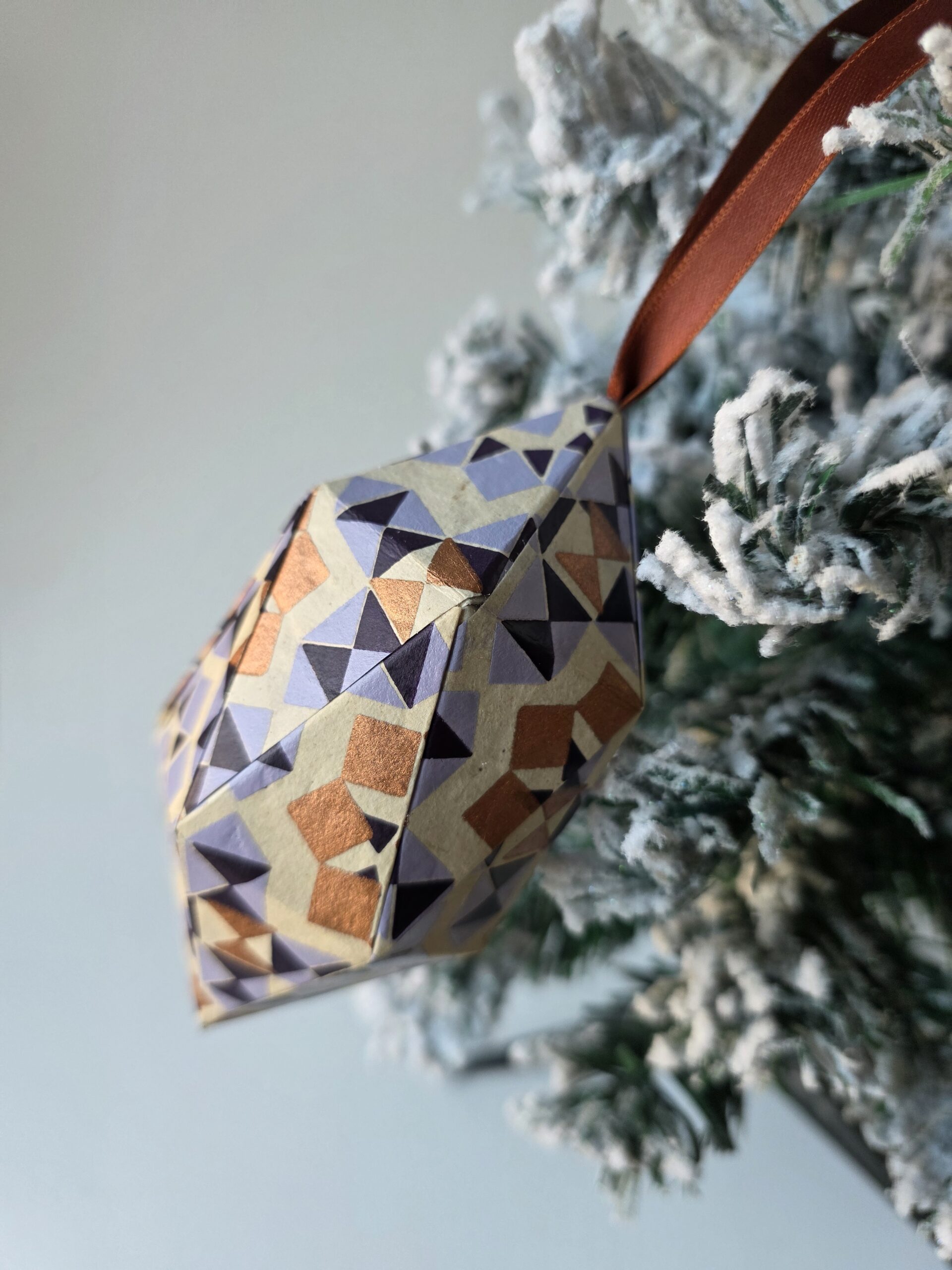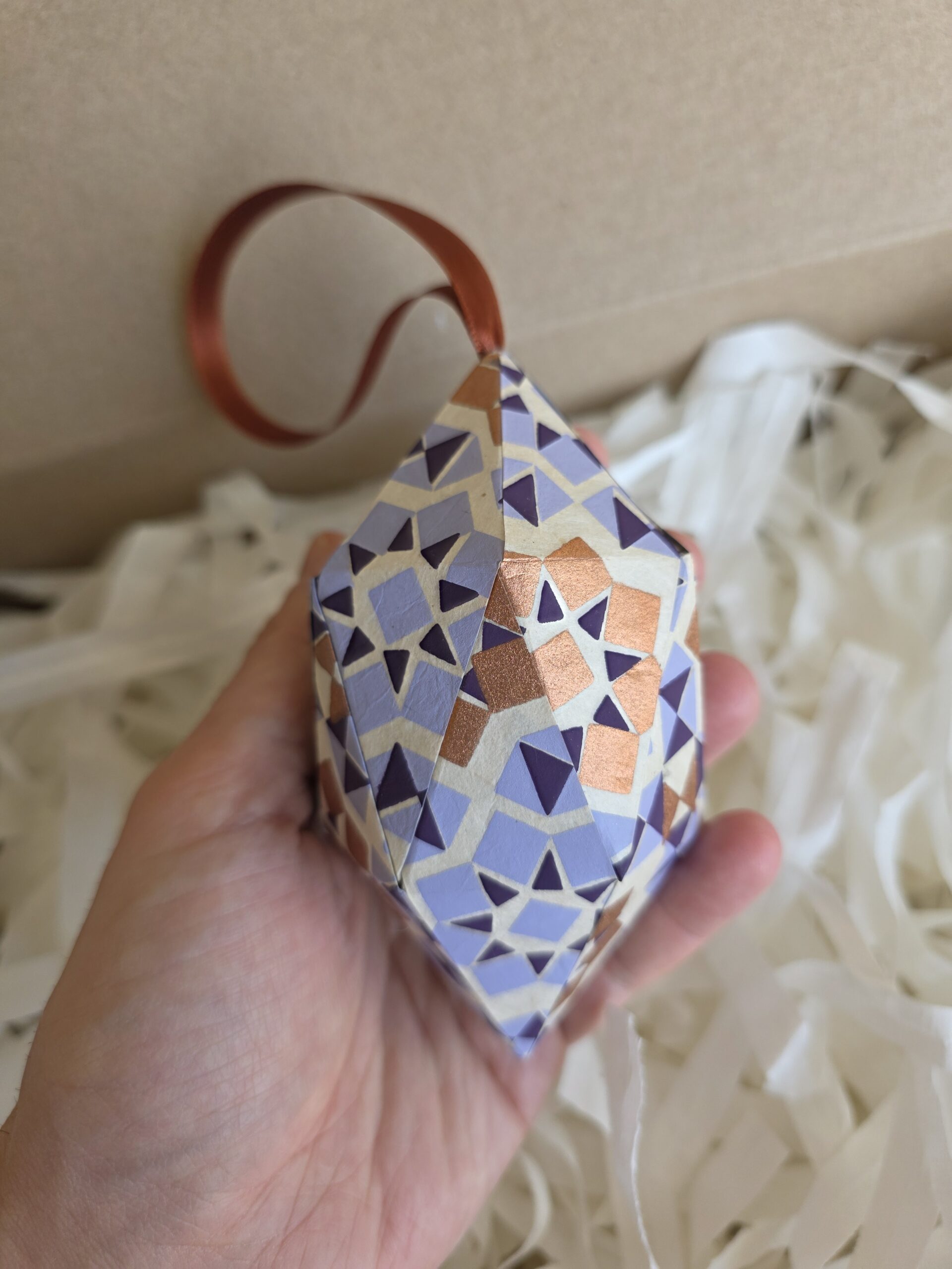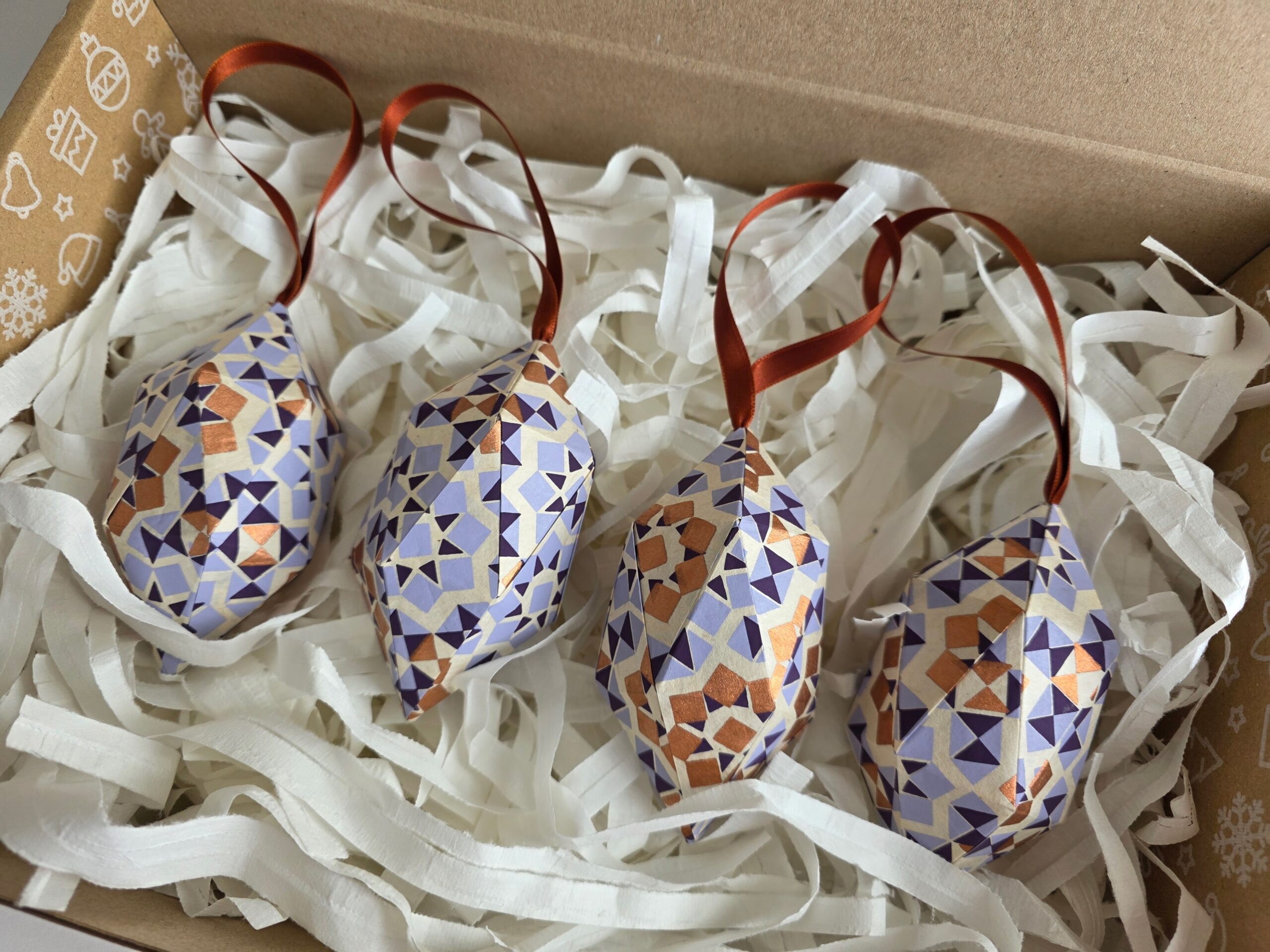 Pack de 4 adornos de kusudama para árbol de Navidad, en forma de dodecaedro con módulos romboidales.